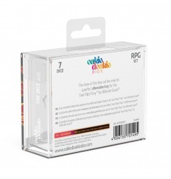 The RPG dice sets (for role-playing games) include 7 different dice: D4, D6, D8, D10 (units), D10% (tens), D12, and D20.