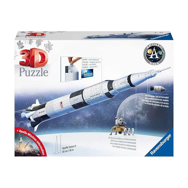Para los entusiastas de los rompecabezas y los visionarios, presentamos el legendario cohete Saturno V en una versión de rompecabezas 3D de 440 piezas. Este modelo incluye fases de cohete separadas, un módulo lunar separable, astronautas y una rampa de lanzamiento.